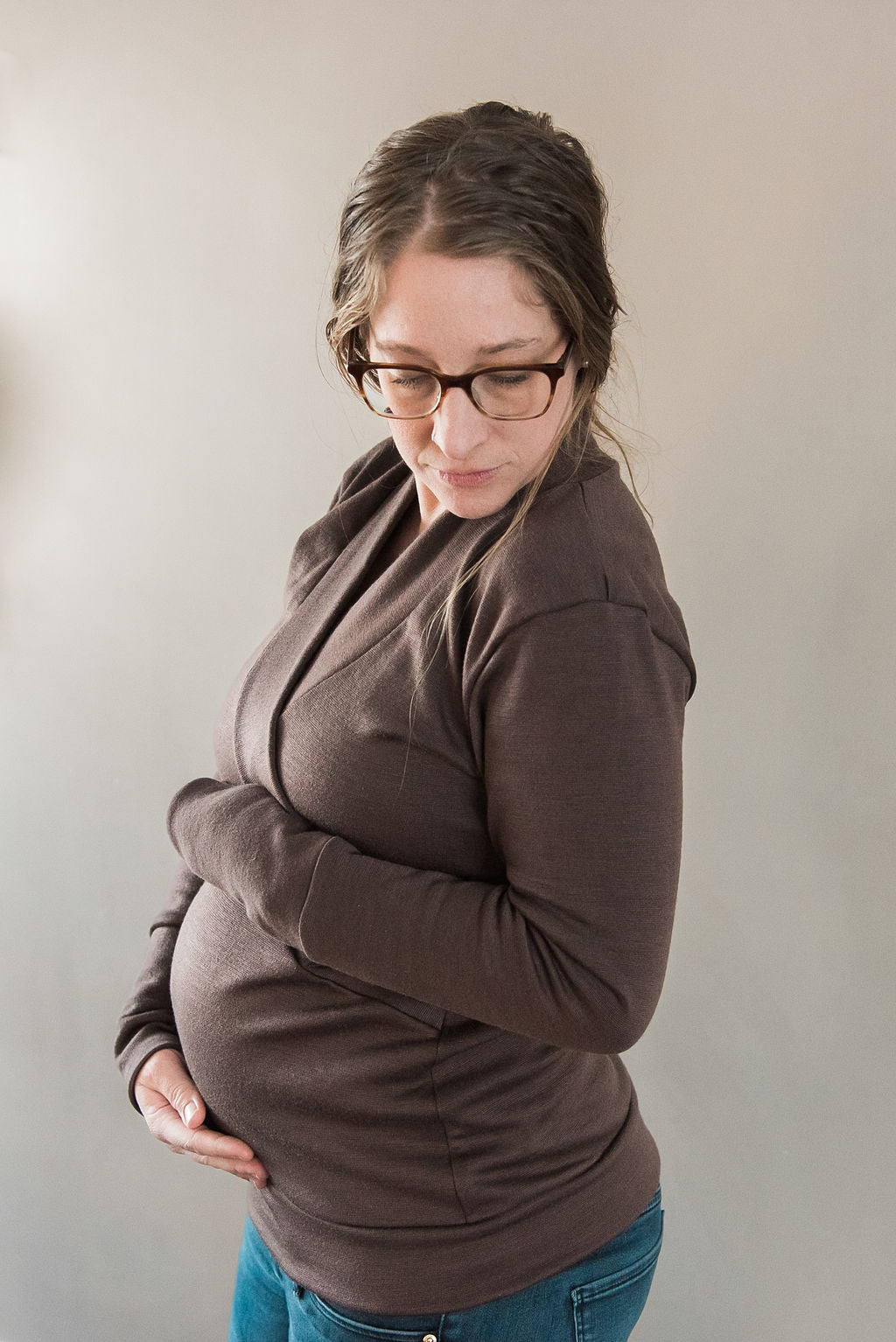 Our Cross Front Shirt is a wardrobe essential that’s as versatile and easy to wear as they come. Whether you’re looking to slip into something comfortable or you’re nursing a new baby, this cross-front shirt with long sleeves is the perfect top. Made out of natural wool and wool blend fabrics, this is the shirt for you, nursing or not! For a more fitted look size one full size down.