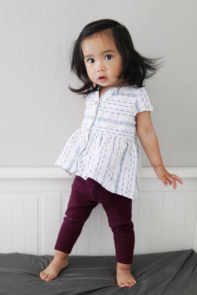 Leggings are designed to taper to the ankle. If you would like a legging that is more fitted in the thigh and slightly less fitted at the ankle please try our straight fit leggings. Leggings come in sizes from cloth diaper friendly through preteen.