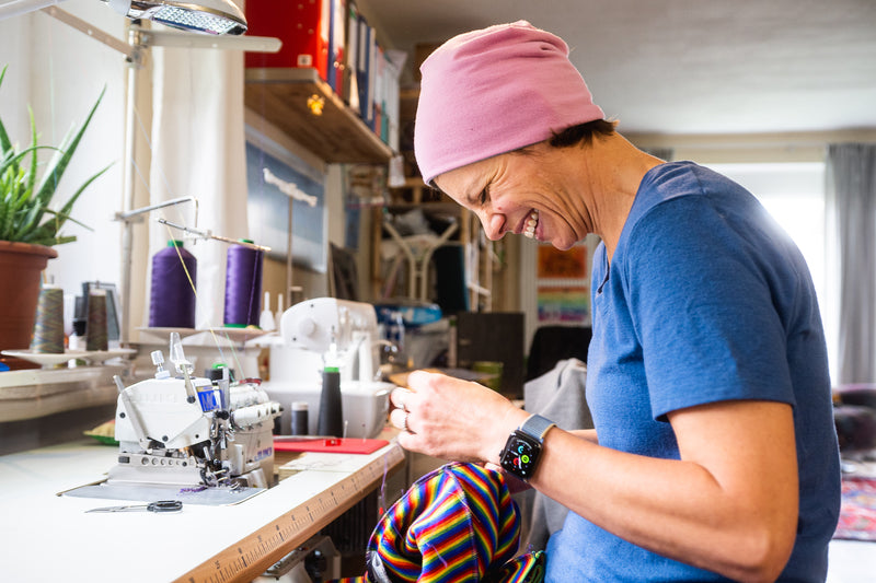 Once you’ve ordered your wool, Humbird headquarters gets right to work, tracing, cutting, sewing, hemming, and going through the quality control process so your garments can be shipped to you in a timely manner. When your garments have shipped, you’ll receive an email from Humbird to tell you they’re on the way! Upon arrival, open your package and celebrate. Remember to rip open mailers open and not cut them (and shake the bag to find swatches of next month's colours!).